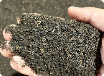 ニチレイフレッシュファームでは、環境負荷を抑えた持続可能な農場経営のために、『純和鶏®』の鶏ふんを肥料に加工しています。バイオマス資源である鶏ふんを、窒素・りん酸・ カリウムを多く含む有機肥料として活用しているのです。鶏ふんの処理はすべて農場内で行われます。最新の高速鶏ふん処理プラントは、通常3ヶ月以上かかる発酵型のたい肥と比べ、1日以内で無菌化された有機質肥料の製造が可能。鶏ふん特有の臭いもしません。